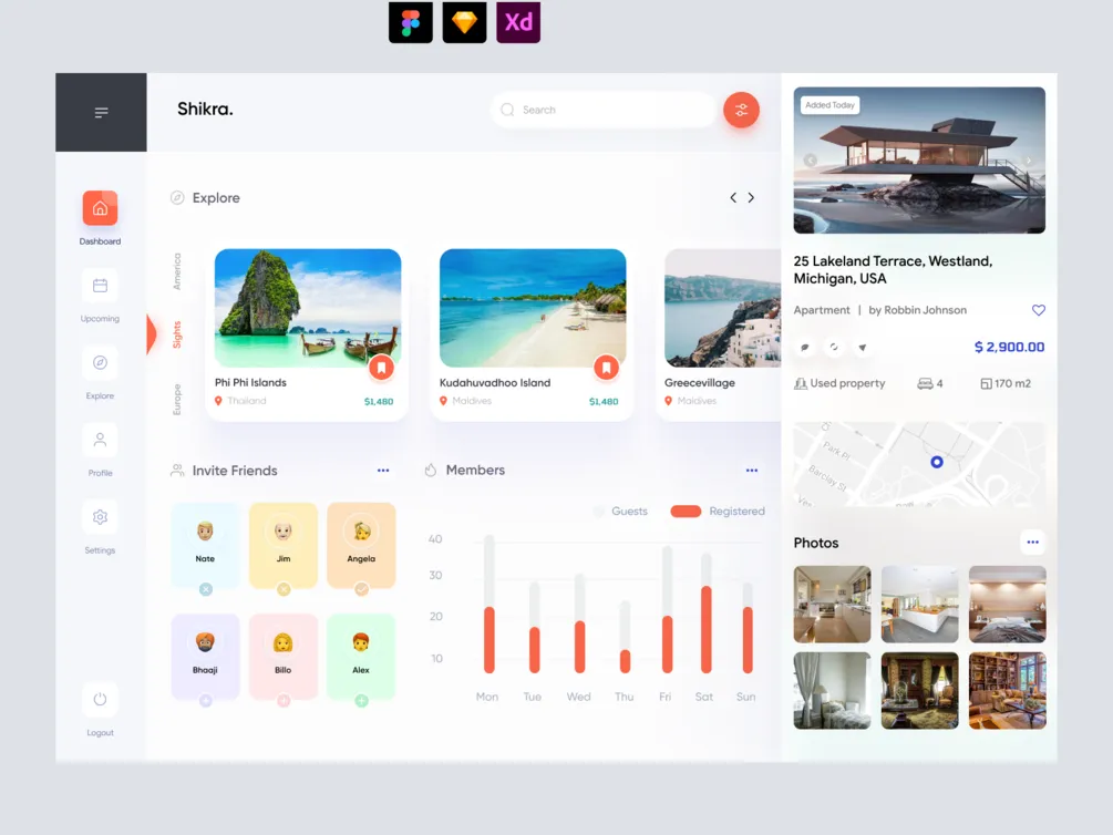This comprehensive Travel Dashboard UI Concept(light theme) featuring modular components will help you build better, consistent, high-quality design. Download free dashboard ui kit for banking. This free Travel Dashboard UI Concept(light theme) is avaialble for Adobe XD, Figma and Sketch. This modern and free Travel Dashboard UI Concept(light theme) can be edited or customized in your favorite design tool.
